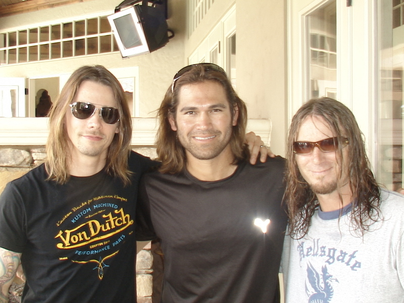 Anyway, in my last blog post I spoke about going to a BBQ at Johnny Damon’s house in Orlando. He lives just four houses down from me. I was able to go but was only able to spend about an hour there due to family commitments. Regardless, it was great seeing Johnny again and good times were had by all. My brother, Michael took a picture that I thought you all might like to see. I’m not in it because it was taken after I left but it includes Alter Bridge’s bass player extraordinaire Brian Marshall (right), our singer Myles Kennedy and Johnny himself.Dsc03121